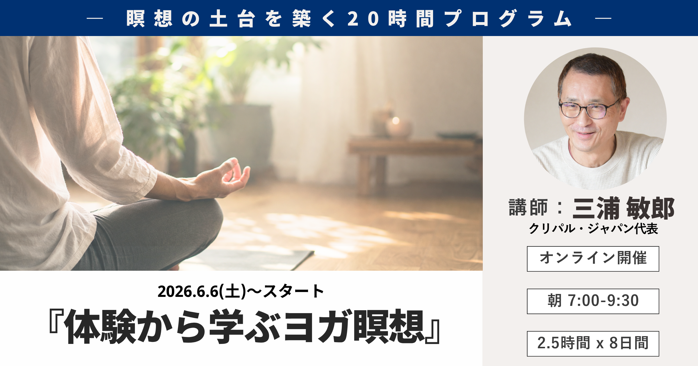 【2026.6.6(土)スタート】三浦敏郎先生の「体験から学ぶヨガ瞑想」オンライン開催!