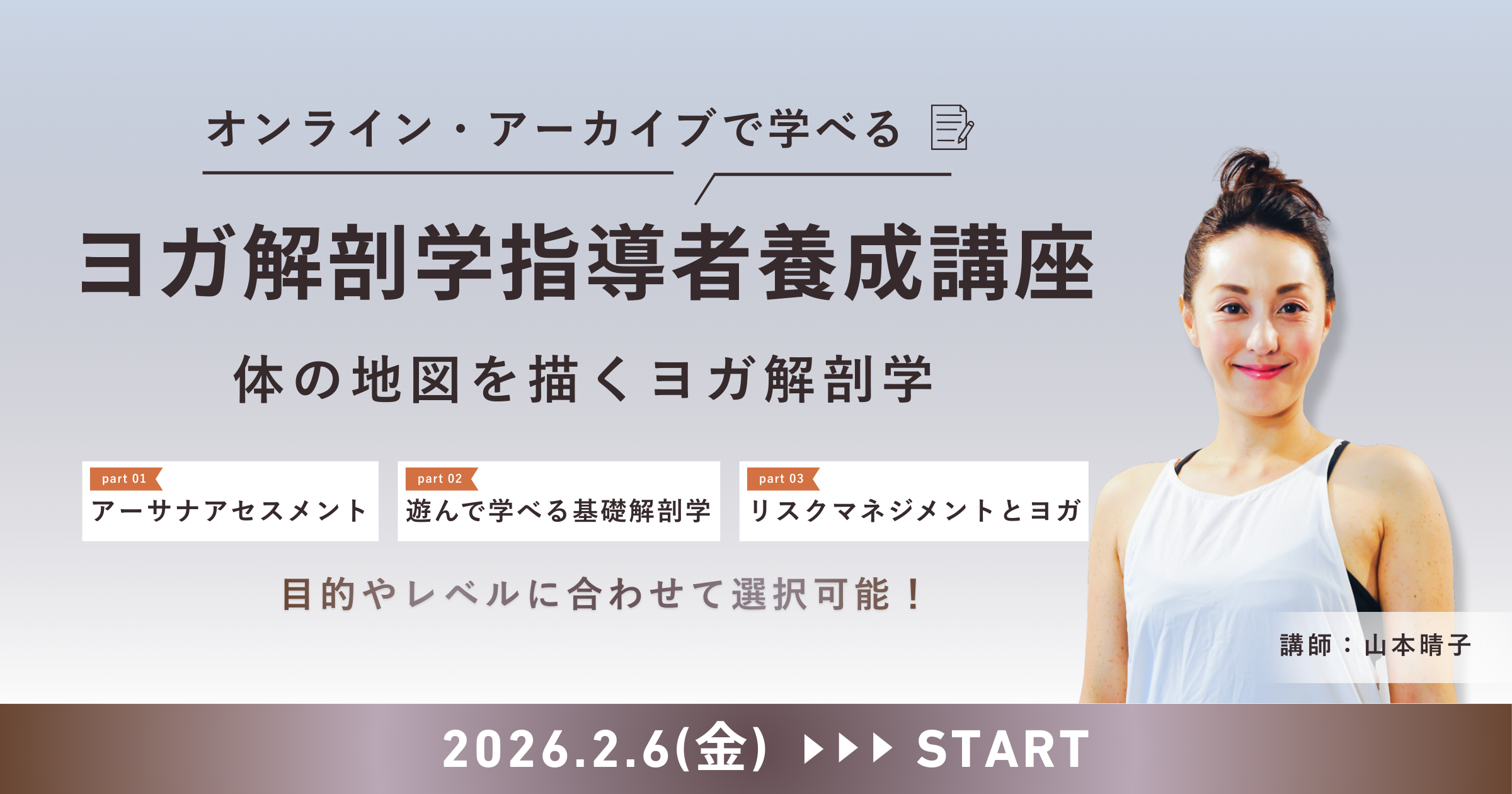 オンライン【2026.2.6(金)】山本晴子先生の『ヨガ解剖学指導者養成講座』アーカイブ受講可