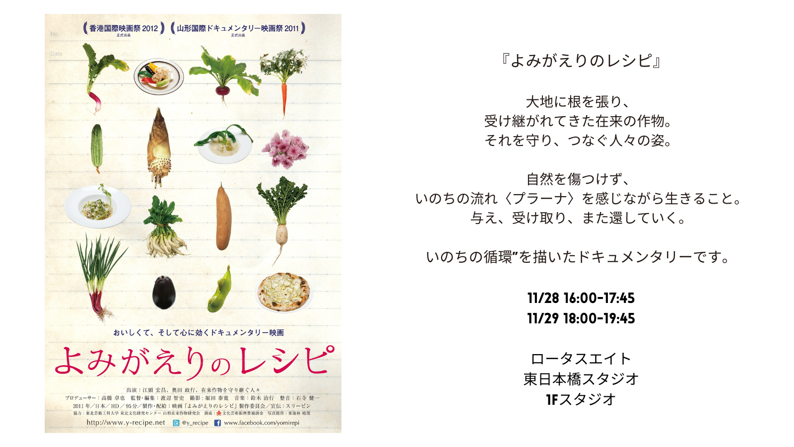 【 11月の上映会 】11/28-11/29『よみがえりのレシピ』